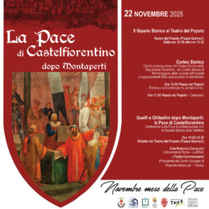 Nel pomeriggio, al Ridotto del Teatro del Popolo (inizio ore 16.00) conferenza organizzata in collaborazione con la Società Storica della Valdelsa dal titolo “Guelfi e Ghibellini dopo Montaperti: la Pace di Castelfiorentino” con interventi di Federico Canaccini (Università di Roma – LUMSA) e – tramite collegamento in videoconferenza – di Paolo Cammarosano (Presidente del Centro Europeo di Ricerche Medievali – Trieste), intervallati da alcune esibizioni di violino dell’associazione Orpheus.