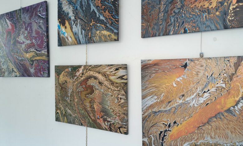 Da una parte il gesto fluido di Massimiliano Pasotto, artista di origini cremonesi che attraverso l’uso dell’acrylic pouring mette in scena una pittura che nasce dall’istinto, dalla musica, dalla libertà espressiva. Le sue tele sono paesaggi emotivi dove l’arte diventa esperienza, riflesso delle vibrazioni interiori e delle forze vitali che attraversano l’esistenza quotidiana.