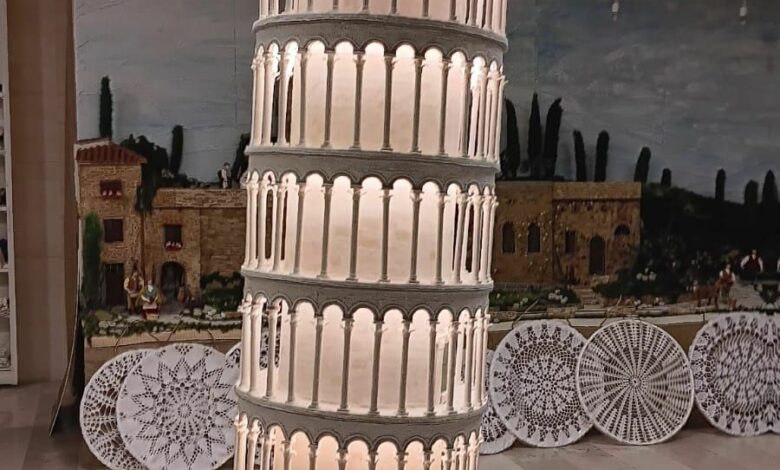 La Torre di Pisa all’uncinetto anteprima de La Via dei Presepi