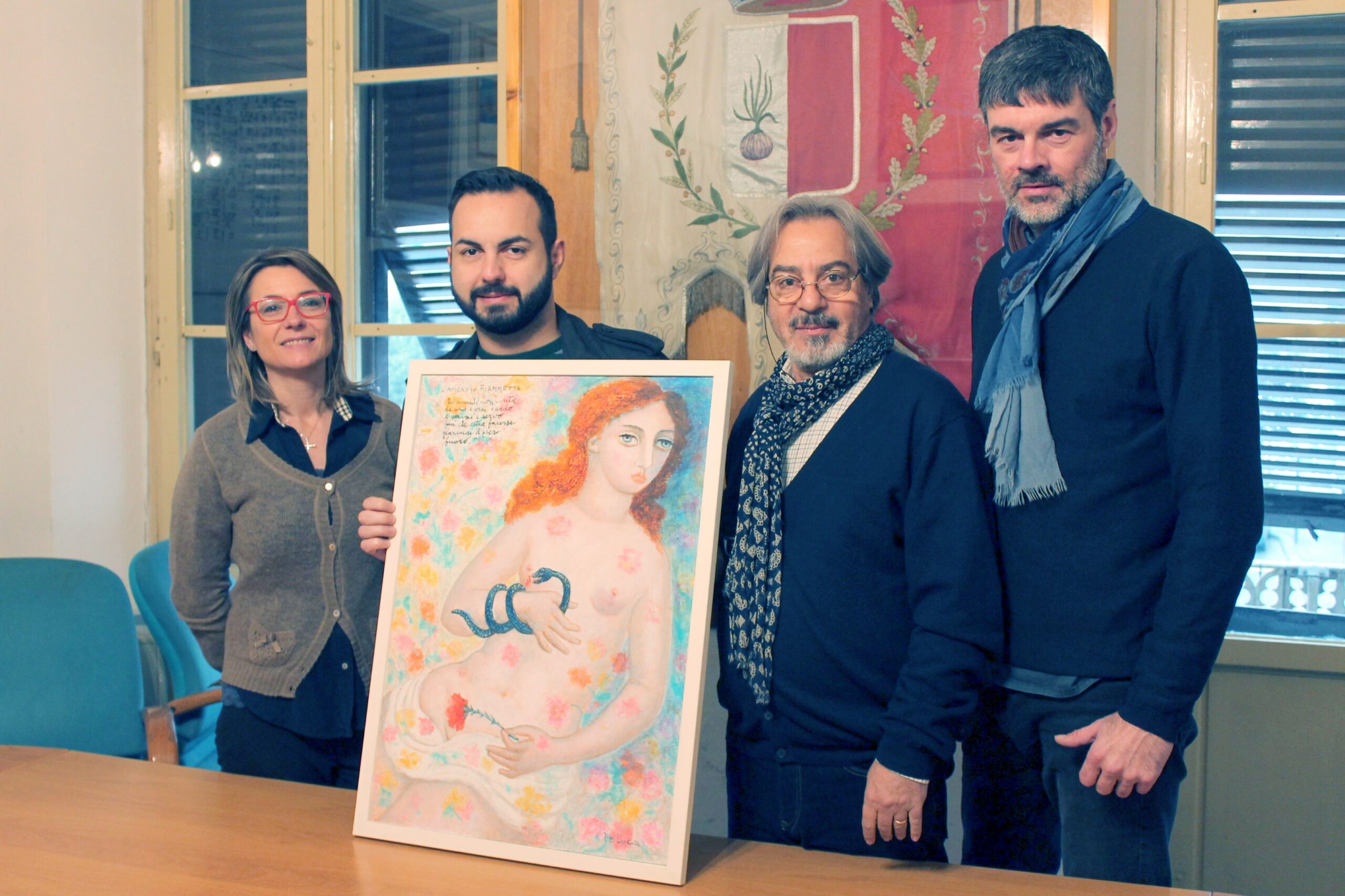 “Ringraziamo Elio De Luca per la donazione di questa sua opera, un quadro, dipinto esclusivamente per il Comune, che andrà ad arricchire la nostra raccolta di opere di artisti contemporanei dedicate a Giovanni Boccaccio – dicono Giacomo Cucini, sindaco di Certaldo e Francesca Pinochi, assessore alla cultura – dopo l’intensa collaborazione avuta con l’artista per la sua esposizione, quest’opera rappresenta un segno tangibile del suo passaggio nel nostro territorio. Un dono alla cittadinanza, poiché entra a far parte del nostro patrimonio artistico e culturale che viene messo a disposizione di tutti.”