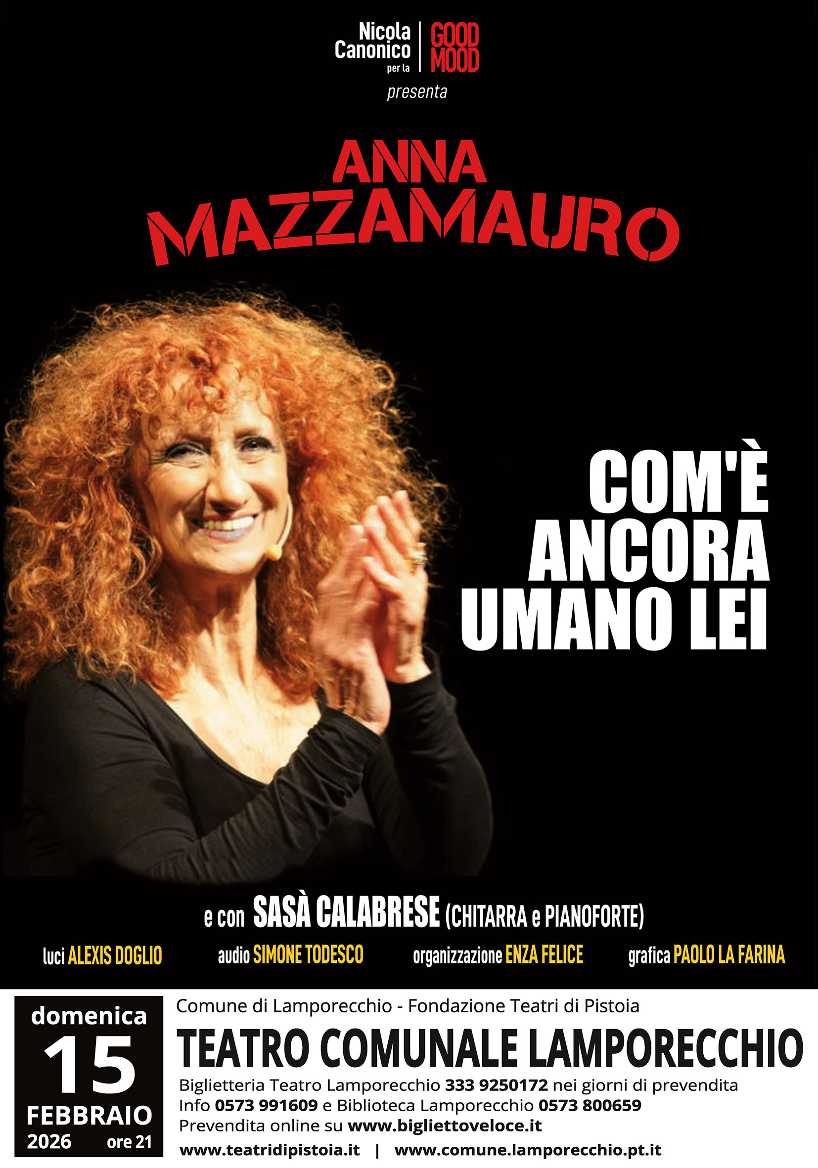 LAMPORECCHIO (PT) | 15 feb Anna Mazzamauro COM’È ANCORA UMANO LEI | Comune di Lamporecchio – Fondazione Teatri di Pistoia