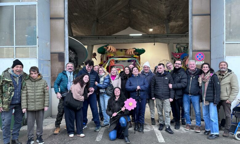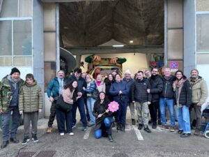 Questa mattina (19 febbraio) le contrade di Pietrasanta hanno accolto agli hangar della Mattonaia la “comitiva” de Le Briccole Special: 8 ragazzi e 5 accompagnatori che, per la prima volta, sono entrati nel “cuore” del Carnevale di Pietrasanta, dove nascono i carri che la domenica sfilano sul circuito cittadino.
