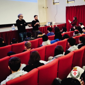 Alla presentazione del volume, avvenuta in due turni al Ridotto del Teatro del Popolo, sono intervenuti gli studenti della 3A, 3C, 3F, 3B, 3D, 3E, 2E, accompagnati dagli insegnanti. Erano presenti anche l’Assessore alla Cultura, Franco Spina, e il responsabile della Biblioteca Comunale “Vallesiana” Giuseppe Lombardo.