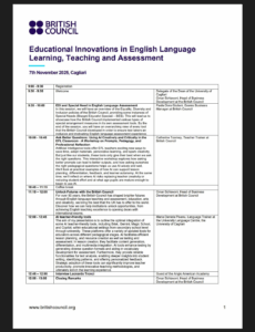 Cagliari, 7 novembre 2025 – Il British Council Italia, in collaborazione con l’Università degli Studi di Cagliari, l’Anglo American Academy e Scuola&Formazione, organizza il seminario internazionale: “Educational Innovations in English Language Learning, Teaching and Assessment”, che si terrà il 7 novembre 2025, dalle 9:00 alle 13:00, presso l’Aula Magna della Facoltà di Ingegneria e Architettura (Via Marengo, 2 – Cagliari).