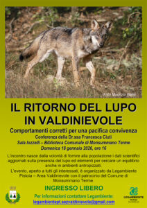 Legambiente Pistoia – Area Valdinievole, con il patrocinio del Comune di Monsummano Terme (PT), organizza l’incontro “Il ritorno del lupo in Valdinievole: comportamenti corretti per una pacifica convivenza”.
