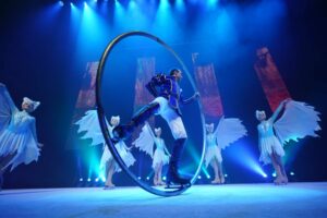 Momenti fiabeschi si mescolano a numeri di abilità che sfidano le leggi della fisica, grazie alle incredibili acrobazie di artisti cubani e ai numeri di equilibrismo su trampoli dei pattinatori. Le coreografie, impreziosite da un imponente led wall, immergeranno gli spettatori in un’atmosfera invernale e magica, rendendo omaggio ai temi di coraggio, amore fraterno e natura che hanno reso celebre “Frozen”.