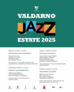 Firenze, 1 luglio 2025 – Torna nel 2025 Valdarno Jazz, la rassegna che porta nel territorio tra Firenze e Arezzo le star del jazz internazionale insieme ai talenti del panorama italiano. Dal 15 luglio al 12 agosto sono 4 i live in programma. Ospite speciale di questa edizione la leggenda della scena statunitense Steve Coleman, sassofonista e compositore tra i più influenti al mondo con un approccio innovativo che fonde tradizione e sperimentazione, incorporando elementi di musica africana, matematica e filosofia. In cartellone anche “Blending the Unconventional”, progetto di tre straordinari artisti, Walter Calloni, Simone Gubbiotti e Gianmarco Scaglia, per una musica senza confini; “Collective Jazz Quintet”, formazione nata per l’occasione da un idea del contrabbassista Gianmarco Scaglia e del batterista Giovanni Paolo Liguori; “Opus Magnum Jazz Group” capitanato da Ettore Fioravanti e Marco Colonna. Valdarno Jazz è realizzato col sostegno di Ministero della Cultura, Regione Toscana e dei comuni di San Giovanni Valdarno, Loro Ciuffenna, Terranuova Bracciolini e Figline Incisa Valdarno, in collaborazione con Associazione Music Pool (info Fb: Valdarno Jazz Festival).