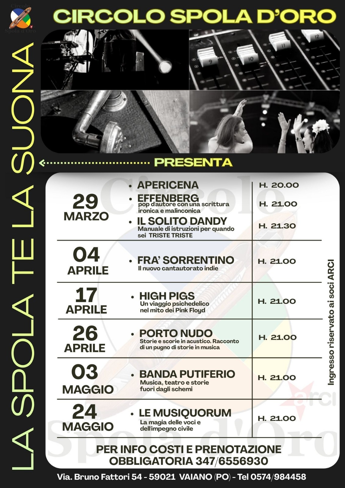L’ingresso è riservato ai soci Arci: sarà possibile sottoscrivere la tessera direttamente sul posto al costo di 10 euro annuali.