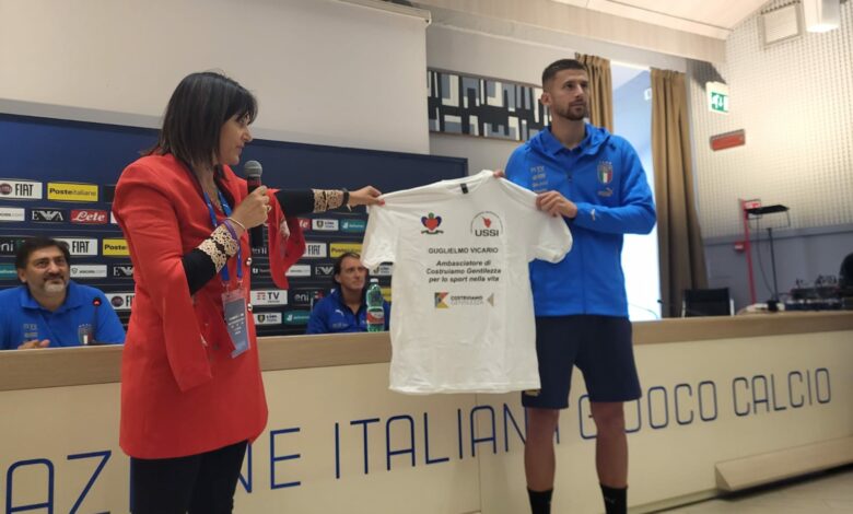 Nella foto, il momento della prima consegna del Premio Costruiamo Gentilezza nello Sport nel settembre 2022 al Centro Tecnico di Coverciano