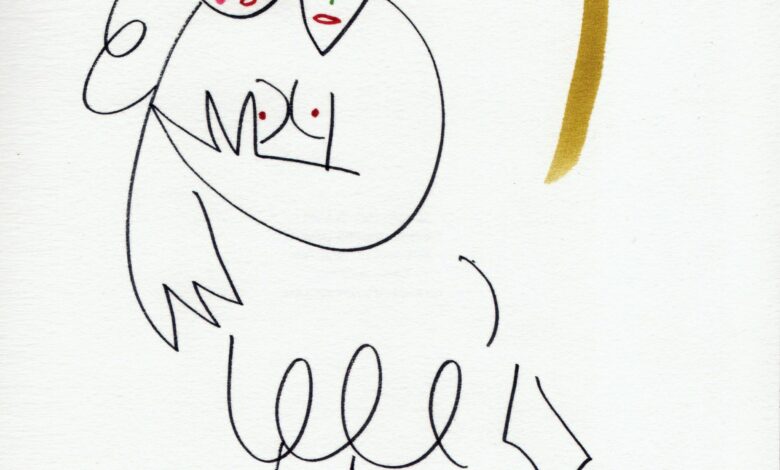 “Spero che i tuoi disegni non abbiano bisogno di aiuto per fare il viaggio dalla mia mano al tuo occhio… e dal tuo occhio all’immaginazione che tutto comprende senza parole. Sono cartoline spedite da istanti volanti, elettrocardiogrammi di vitalità, doni”. Così ripeteva Kemp che, dopo gli studi al Bradford College of Arts, ha sempre affiancato il disegno e la pittura alle altre attività creative, in questo molto simile a Fellini che spesso creava i suoi personaggi sulla carta prima di farli vivere sullo schermo. Fra le numerose mostre, l’artista amava ricordare quella di Barcellona, alla Fundació Joan Miró nel 1980, nata proprio dall’ammirazione di Mirò per l’artista. Alla galleria Studio 38 si potranno ammirare schizzi di primo getto dove si riconoscono i suoi soggetti preferiti: marinai, amanti, saltimbanchi e pierrot.