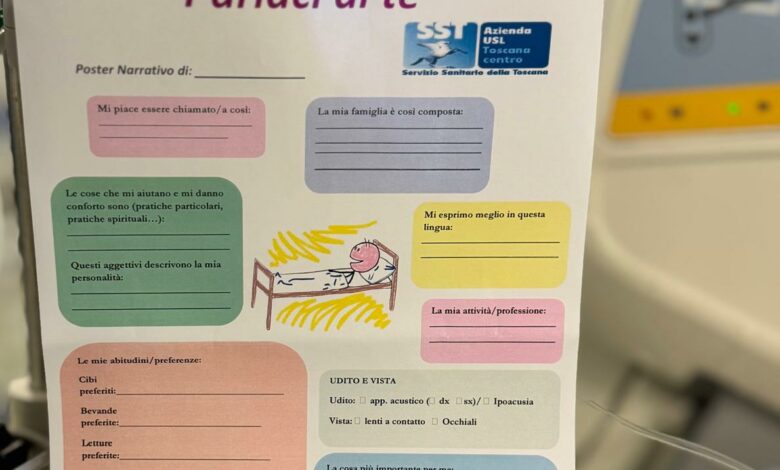 Il progetto, avviato da alcune settimane, ruota attorno a un poster narrativo dal titolo “Parlaci di te”, che viene compilato dai familiari del paziente ricoverato rispondendo a semplici domande in grado di rappresentare la persona, i suoi gusti, le cose che più lo fanno star bene. Le informazioni raccolte diventano un vero e proprio ponte relazionale: durante la fase di risveglio, aiutano il personale sanitario a rivolgersi al paziente chiamandolo, ad esempio, con il nome più familiare o facendo riferimento a ciò che ama, contribuendo a creare un ambiente più rassicurante. Il poster viene poi affisso accanto al letto, in particolare nei casi che richiedono più giorni di sedazione e per accompagnare e sostenere il momento del risveglio.