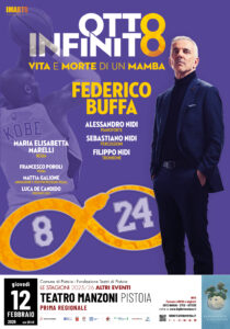 Federico Buffa, tra i più grandi storyteller sportivi in Italia, torna in scena nella stagione teatrale 2026 con lo spettacolo dedicato alla leggenda del basket mondiale Kobe Bryant, OTTO INFINITO – Vita e morte di un Mamba. Riprende il suo viaggio nei teatri più prestigiosi d’Italia, facendo tappa in numerose piazze nelle principali basketball cities del paese ed arrivando sul palco del Teatro Manzoni di Pistoia, in prima regionale, giovedì 12 febbraio (ore 20.45) nella sezione “Altri eventi” delle Stagioni dei Teatri di Pistoia, dopo il successo della sua Milonga del Fútbol.