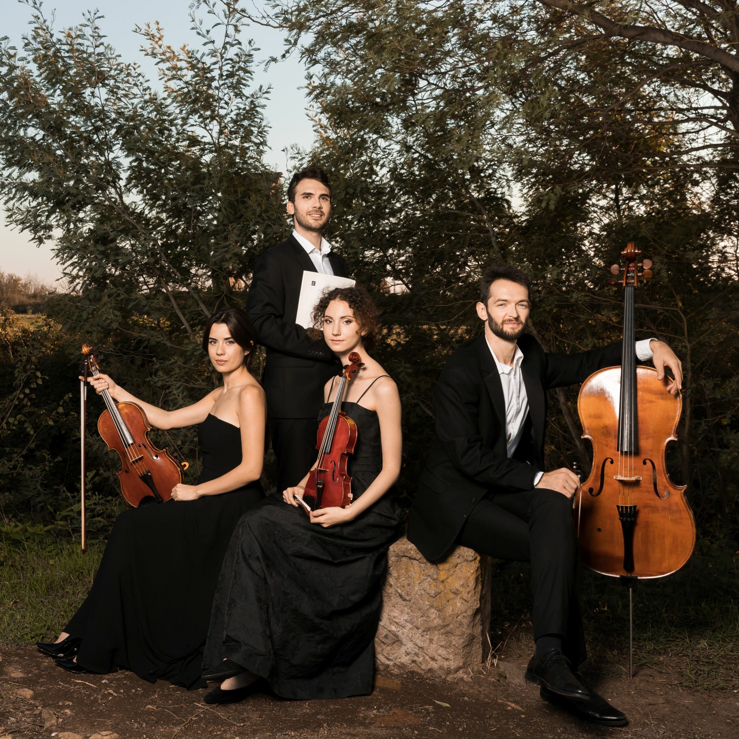 BIO || Fondato nel 2016, il Quartetto Werther è oggi considerato tra le formazioni cameristiche più promettenti del panorama concertistico nazionale e internazionale. Tra i rari quartetti con pianoforte stabili in Europa, si distingue per la profonda intesa e la solida coesione dei musicisti, nonché per il vigore, la vitalità e l’originalità delle interpretazioni, sempre orientate alla piena comprensione e al rispetto del testo musicale. Il quartetto ha sviluppato il proprio linguaggio artistico sotto la guida del Trio di Parma e Pierpaolo Maurizzi, eredi della grande tradizione esecutiva italiana, e di Patrick Jüdt, vice-direttore dell’ECMA (European Chamber Music Academy), della quale il Werther è ensemble effettivo. Dalla sua fondazione, il Quartetto ha collaborato con le principali istituzioni italiane ed europee e ha debuttato per la prestigiosa Kammermusik Basel allo Stadt-Casino di Basilea. Tra le istituzioni che lo hanno ospitato figurano la Società del Quartetto di Milano, la Società dei Concerti di Milano, la Società dei Concerti di Trieste, la Fondazione Accademia Nazionale di Santa Cecilia, il Bologna Festival, il Festival dei Due Mondi di Spoleto, gli Amici della Musica di Firenze, Musikamera, l’Accademia Filarmonica Romana, la Società dei Concerti di Parma, la Moscow International House of Music e il Festival Musikdorf Ernen. Il Quartetto Werther ha ricevuto importanti riconoscimenti in concorsi internazionali, tra cui, nel 2025, il Primo Premio al Brahms International Chamber Music Competition di Gdansk. L’attività concertistica del quartetto è stata premiata dall’Associazione Nazionale dei Critici Italiani, che nel 2020 gli ha conferito il XXXIX Premio “Abbiati” – Premio “Farulli” come miglior giovane ensemble, e dall’Accademia Nazionale di Santa Cecilia, che lo ha insignito del Premio del Presidente della Repubblica alla memoria di Giuseppe Sinopoli, consegnato dal Presidente Sergio Mattarella presso il Palazzo del Quirinale. Allievo dei Corsi dell’Accademia nella classe di Carlo Fabiano, il quartetto ha inoltre ricevuto una “menzione speciale per le eccezionali doti cameristiche”, riconoscimento mai assegnato in oltre 80 anni di storia dei corsi. Dal 2018 il Werther è membro de Le Dimore del Quartetto, progetto culturale dedicato alla valorizzazione del patrimonio artistico europeo, e promuove la musica contemporanea italiana collaborando con compositori come Nicola Campogrande e Alessandro Solbiati, il cui brano Imago, scritto e dedicato al quartetto, è stato eseguito in prima assoluta per la Società dei Concerti di Piacenza nella stagione 2024/25. Il primo disco del quartetto, Fauré Piano Quartets (Brilliant Classics, 2021), ha riscosso ampi consensi di critica e pubblico ed è stato trasmesso in numerose trasmissioni radiofoniche in Italia e all’estero. Recentemente è uscito per la casa discografica tedesca Genuin Classics il nuovo progetto Elective Affinities, dedicato a Mendelssohn, Brahms e Goethe, che racconta la storia e lo spirito del Quartetto Werther.