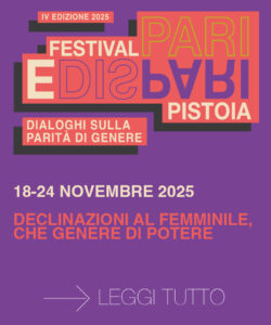 Si tratta del terzo e penultimo appuntamento della quarta edizione di Pari e Dispari, manifestazione nata nel 2022 con l’obiettivo di aprire un dibattito sugli stereotipi di genere e quest’anno dedicata al tema “Declinazioni al femminile, che genere di potere”. Un tema che si pone l’obiettivo di evidenziare le peculiarità femminili in ruoli di potere e responsabilità. Un percorso affrontato attraverso momenti d’incontro e confronto con autori e autrici, ma anche donne e uomini con ruoli di rilievo in singoli campi (lavoro, associazionismo, rappresentanza, imprenditoria, informazione). La manifestazione si concluderà il 24 novembre (ore 18) con Alice Urciuolo, e “La verità che ci riguarda” (66thand2nd, 2023). Dialogano con l’autrice: Elena Dei docente del liceo Forteguerri di Pistoia; Paolo Dirindelli neuropsichiatra infantile dell’Ufsmia Pistoia.