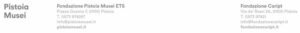Tutte le iniziative di Fondazione Pistoia Musei sono rese possibili grazie al sostegno di Intesa Sanpaolo, main partner delle attività espositive, e delle realtà aderenti alla Corporate Membership di Pistoia Musei: CMSA Società Cooperativa Muratori Sterratori e Affini, Conad Nord Ovest, Confcommercio Pistoia e Prato, Consorzio Leonardo Servizi e Lavori, Del Pinto e Associati Studio Legale, Diddidino, D.R.E.Am. Italia, El.En., FABO Tape Solutions, Florence One, Formitalia, Publiacqua, Tosco Data, Vannucci Piante.