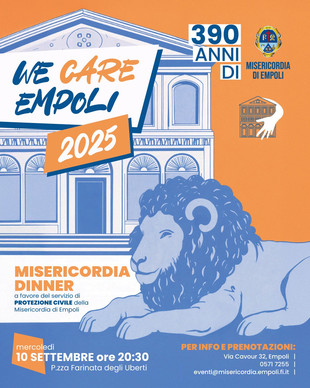 EMPOLI 02.09.2025- Mancano pochi giorni alla terza edizione di We Care Empoli: la grande serata di solidarietà e intrattenimento, organizzata dalla Misericordia di Empoli, nel cuore del centro storico empolese. L’appuntamento è fissato per mercoledì 10 settembre in piazza Farinata degli Uberti alle 20.30. Come di consueto la cena di beneficenza è dedicata a raccogliere fondi a favore di enti e associazioni che si adoperano per la comunità: in questa edizione il ricavato sarà devoluto al potenziamento delle attività svolte dalla Protezione Civile della Misericordia di Empoli.