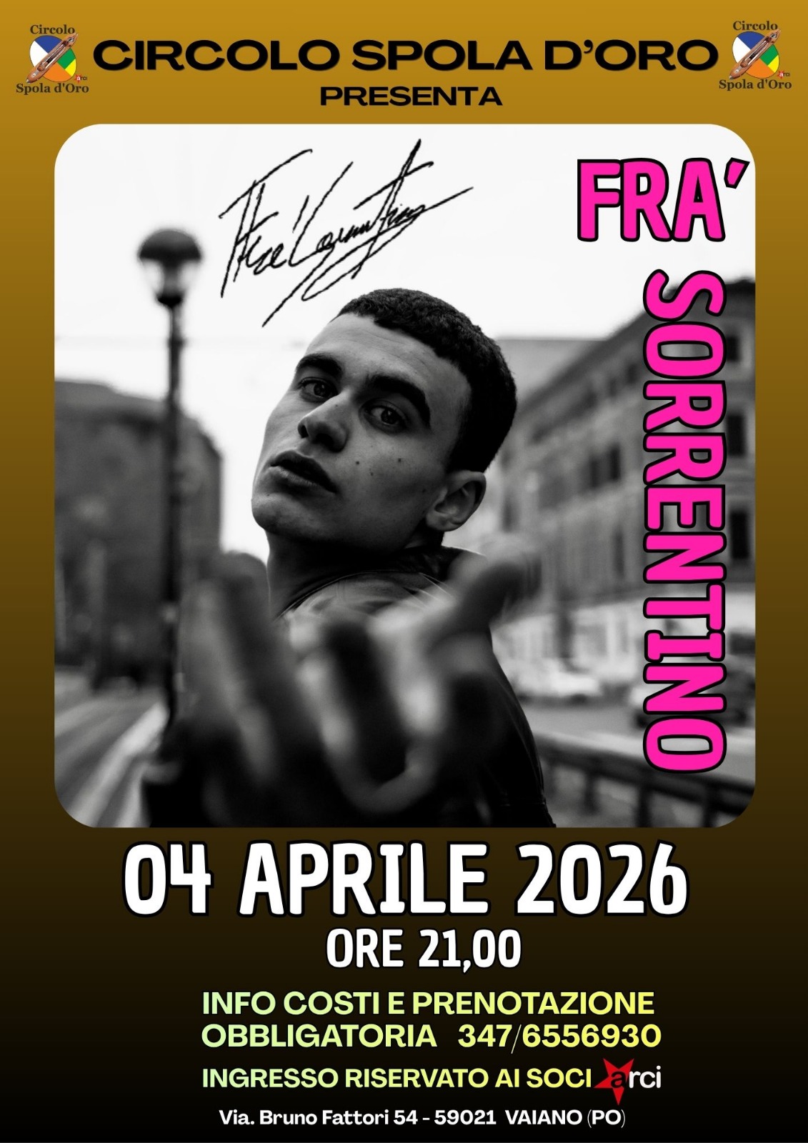 Dopo il primo appuntamento, che ha visto protagonista Effenberg insieme allo spettacolo de Il Solito Dandy, la rassegna torna sabato 4 aprile alle ore 21 con il live di Fra’ Sorrentino, tra le voci emergenti più interessanti della scena indipendente italiana.