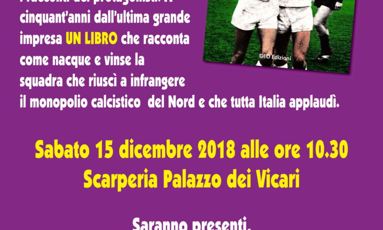 Presentazione “Lo scudetto dei giovani…” sabato 15 dicembre Scarperia Palazzo Vicari ore 10,30