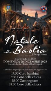 Ritorna dopo molto tempo il Presepe Vivente per il Natale alla Bastia. Dalle ore 15 di domenica 28 dicembre, nell’omonima località di Ponte a Elsa (Empoli), si terrà l’apprezzata rappresentazione della Natività. Il coro della Chiesa sarà presente per due volte, alle 17.30 e alle 18.30, mentre alle 17 ci sarà il coro dei bambini e alle 18 lo zampognaro. Come un teatro con tanto di scenografie, ci saranno 8 postazioni fisse a rappresentare tutti i personaggi e le fasi della natività.