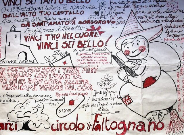 Accanto ai poeti estemporanei della serata ci saranno le befanate cartellonate, ovvero strofe e rime illustrate su cartelloni. Come già avviene da due anni la Pro Loco le raccoglie e stampa un piccolo quaderno antologico.