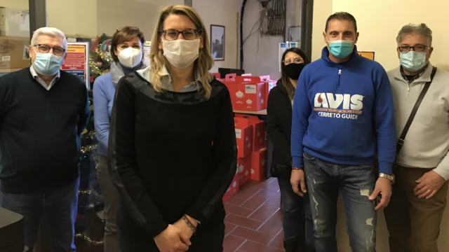 Cerreto Guidi, 22 dicembre 2020-Sono 35 i pacchi donati dall’AVIS di Cerreto Guidi all’Amministrazione comunale per le famiglie e per l’infanzia. I pacchi saranno consegnati alle persone che sono collegate ai servizi sociali del Comune.
