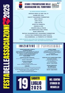Reggello, 15/07/2025 – Sabato 19 luglio Reggello torna a celebrare il mondo del volontariato e dell’associazionismo con la Festa delle Associazioni, un’intera giornata di eventi, attività e momenti di condivisione dedicati alle realtà locali che animano la vita del nostro territorio.
