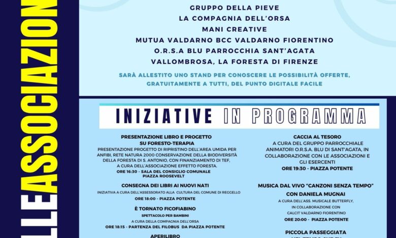 Il cuore della manifestazione sarà piazza Potente, dove dalle ore 18 saranno allestiti gli stand delle associazioni locali, punto di incontro tra cittadini, volontari e operatori del terzo settore. Un’occasione per conoscere più da vicino i tanti volti dell’impegno civile a Reggello.