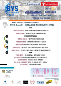 Dopo il successo dello scorso anno, Vinians Production rilancia il progetto BYS – By Your Side, confermando la propria vocazione a unire arte, cinema e solidarietà in un’unica visione: trasformare la creatività in strumento di partecipazione sociale. L’evento si terrà nell’ambito della Festa del Cinema di Roma all’interno dello Spazio Lazio Terra di Cinema mercoledì 22 ottobre alle ore 18.00.