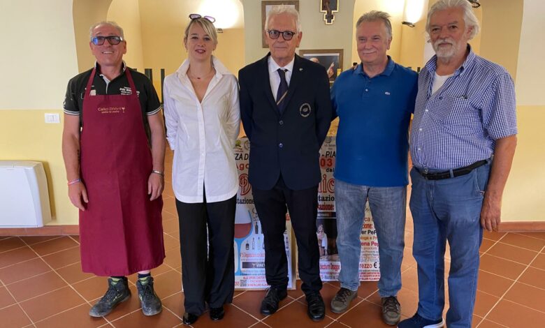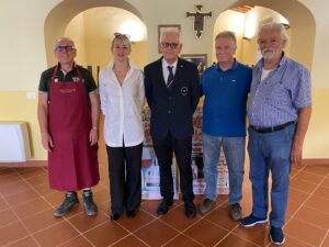 Nella foto da sinistra, Maurizio Pini, presidente dell’Associazione Sofignano, l’assessora Chiara Martini, il sommelier e rappresentante Ais Andrea Berti, Franco Mengoni, dell’Associazione Carnevale Vaianese, e Francesco Santi, cuoco dell’Associazione Sofignano.