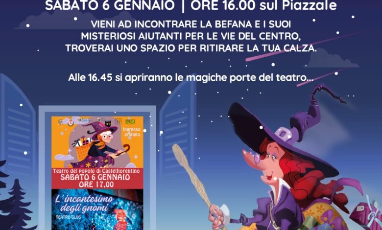 “La Befana vien di notte con le scarpe tutte rotte” recita un famoso adagio popolare. E come vuole la tradizione anche Castelfiorentino si prepara ad accogliere la simpatica vecchietta, che oltre a rallegrare le feste in famiglia farà la sua comparsa nel pomeriggio di sabato 6 gennaio, nelle vie del centro commerciale naturale.
