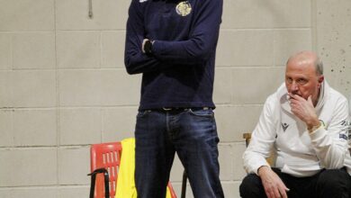 Corsi prende per mano i suoi fino al nuovo +6 locale, finché due dormite della difesa gialloblu permettono a Prato di toccare la doppia cifra di vantaggio. Sul 33-23 coach Betti ferma il gioco per provare a mettere ordine, ma l’attacco castellano fatica a trovare soluzioni di fronte alla zona laniera. Mancini, in contropiede, rompe finalmente gli indugi ed inaugura il mini break chiuso da Landi (35-29), ma Prato amministra fino al 42-35 di metà gara.