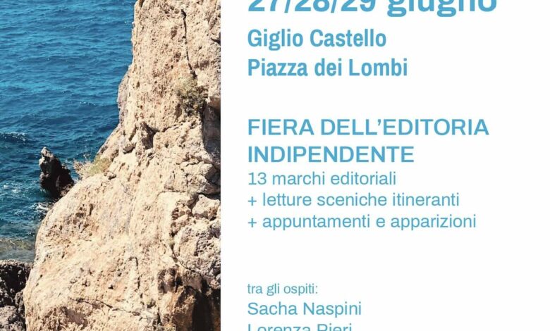 Centro nevralgico della manifestazione saranno Piazza dei Lombi e la Sala dei Lombi a Giglio Castello. È nella piazza che ogni giorno si terrà la fiera dell’editoria indipendente (venerdì 27 e sabato 28 dalle ore 18.00, domenica dalle 10.00), che vedrà la partecipazione di Amarilla Edizioni, Capovolte, Edizioni Clichy, effequ, Emons Libri e Audiolibri, Exorma Edizioni, L’orma editore, Mercurio Books, NNE, pièdimosca, Edizioni Sur, Timeo e Tlon. Ad ogni casa editrice sarà associata una bottiglia prodotta dai vignaioli dell’Isola del Giglio, e chiunque effettuerà un acquisto avrà diritto a una degustazione gratuita.