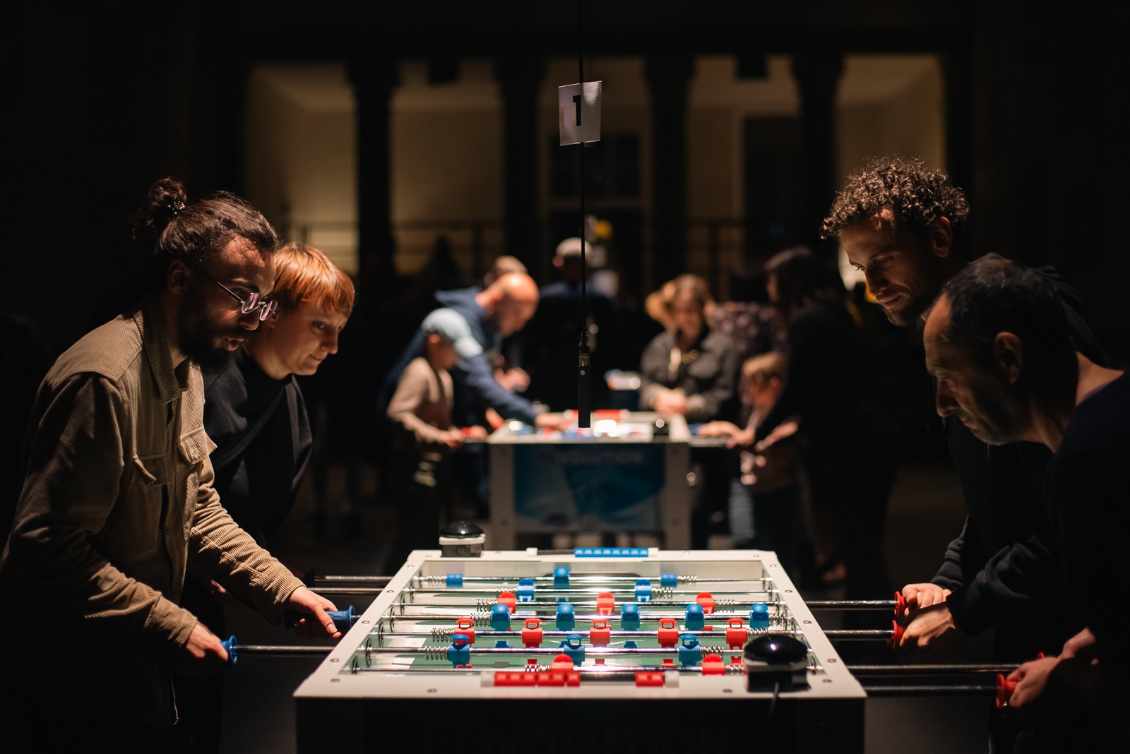 per una pluralità di giocatori di calcio-balilla e live electronics
