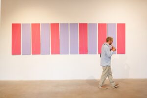 โ€œGli etruschiโ€ (Mario Nigro, 1979). Dodici pannelli affiancati, equidistanti, di colore rosa acceso e lilla rappresentano il concetto della โ€œmetafisica del coloreโ€, valorizzando il cromatismo, aspetto fondamentale della pittura secondo lโ€™artista, restituito in modo essenziale, al fine di rispecchiare la condizione della psiche umana.