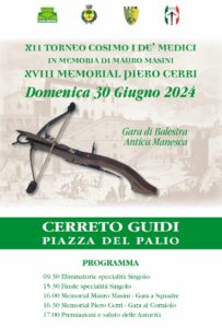 Cerreto Guidi, 26 giugno 2025– Saranno numerosi i balestrieri in gara domenica 30 giugno,  nella Piazza del Palio, a Cerreto Guidi.