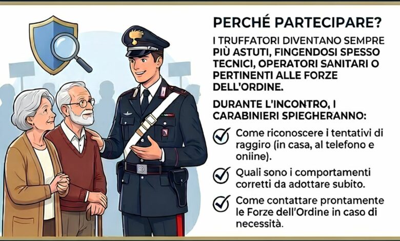 Nel corso dell’incontro, i Carabinieri illustreranno in modo chiaro e diretto come individuare i segnali di pericolo, quali comportamenti adottare per proteggersi e come contattare tempestivamente le forze dell’ordine in caso di necessità.