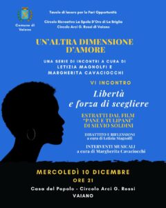 Vaiano, chiude la rassegna “Un’altra dimensione d’amore”: un viaggio nel cinema che parla di libertà. Appuntamento mercoledì 10 dicembre al circolo Arci G. Rossi