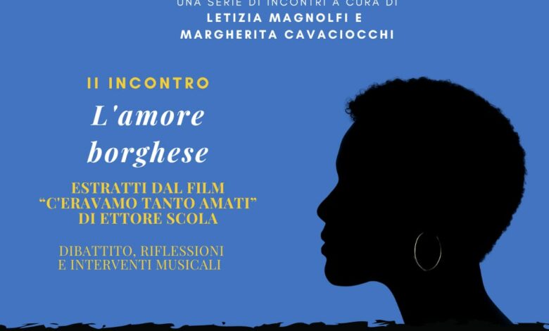 L’incontro, dal titolo “L’amore borghese”, affronterà il tema dell’amore di convenienza, nella cornice dell’Italia del miracolo economico degli anni Sessanta, quando la rispettabilità sociale spesso prevaleva sul sentimento e la figura femminile veniva definita attraverso il ruolo imposto dal ceto di appartenenza.