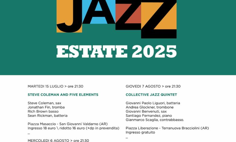 Il festival prosegue poi venerdi 29 agosto alle 21:30 in piazza delle Torri a Terranuova Bracciolini (AR) con “Collective Jazz Quartet”, alias Giovanni Paolo Liguori alla batteria,  Giovanni Benvenuti al sax, Santiago Fernandez al piano e Gianmarco Scaglia al contrabbasso. Un omaggio all’interplay, una sorta di autoritratto a metà tra ragione ed istinto, tra rigore e libertà in un fluire di emozioni che si irradiano da un repertorio il cui unico desiderio resta quello di comunicare. In questo scorrere di energie ed idee, a volte, il nucleo della formazione si apre a nuovi ospiti e diverse collaborazioni. I musicisti insieme collaborano con grande energia e con rilassamento e creatività alla progressione sonora, armonica e ritmica del concerto in una sorta di quadro a volte naif a volte impressionistico o estemporaneo (ingresso gratuito).