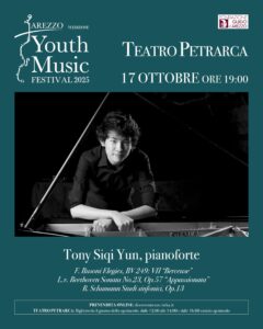 Venerdi 17 ottobre ore 19 al Teatro Petrarca di Arezzo per “Youth Music Festival” il talento del pianista canadese Tony Siqi Yun