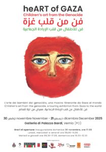E oggi quei disegni prendono vita in una mostra toccante, che sta girando l’Italia e che da domenica 30 novembre – l’inaugurazione è alle 17 – fino al 21 dicembre sarà a Vernio, allestita nella galleria di Palazzo Bardi. Promossa dal Comune di Vernio insieme a tante associazioni del territorio, “heART of GAZA” è organizzata da Andrea Fani dell’associazione Granello di Senape, che sta via via portando un messaggio di pace dando voce a chi spesso non ce l’ha: i bambini.