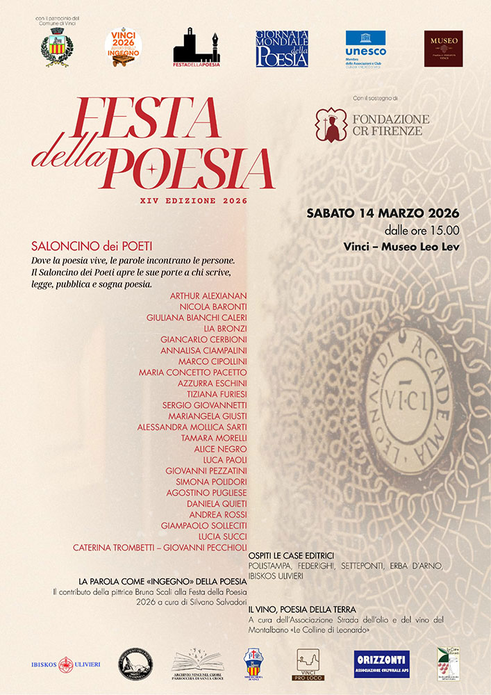 Il 14 e il 21 marzo 2026, in occasione della Giornata Mondiale della Poesia, Vinci e il Montalbano si trasformano in un vero e proprio laboratorio di idee e bellezza: poeti affermati e nuove voci presentano le loro opere, editori e autori si confrontano sulle sfide della poesia contemporanea, giovani musicisti intrecciano la parola con il suono, dando vita a un dialogo vivo e partecipato.