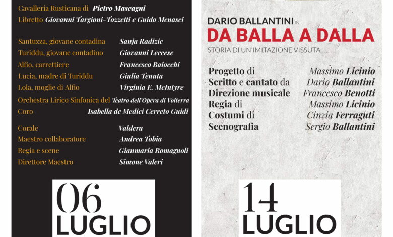 Due eventi “Cavalleria Rusticana di Mascagni” e ” Da Balla a Dalla” di Dario Ballantini, si terranno rispettivamente il 6 luglio e il 14 luglio a Cerreto Guidi, che vedono come main sponsor di un’operazione culturale d’eccellenza per il territorio, Banca Cambiano e Cabel Holding.